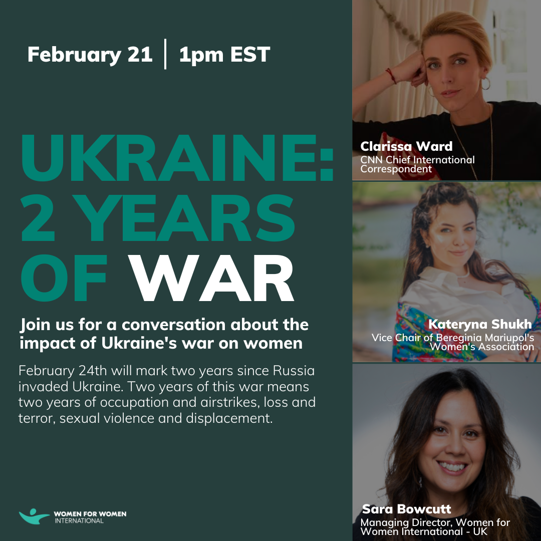 Kateryna and Clarissa will be in conversation with Women for Women International – UK Managing Director, Sara Bowcutt. This event will be recorded.
